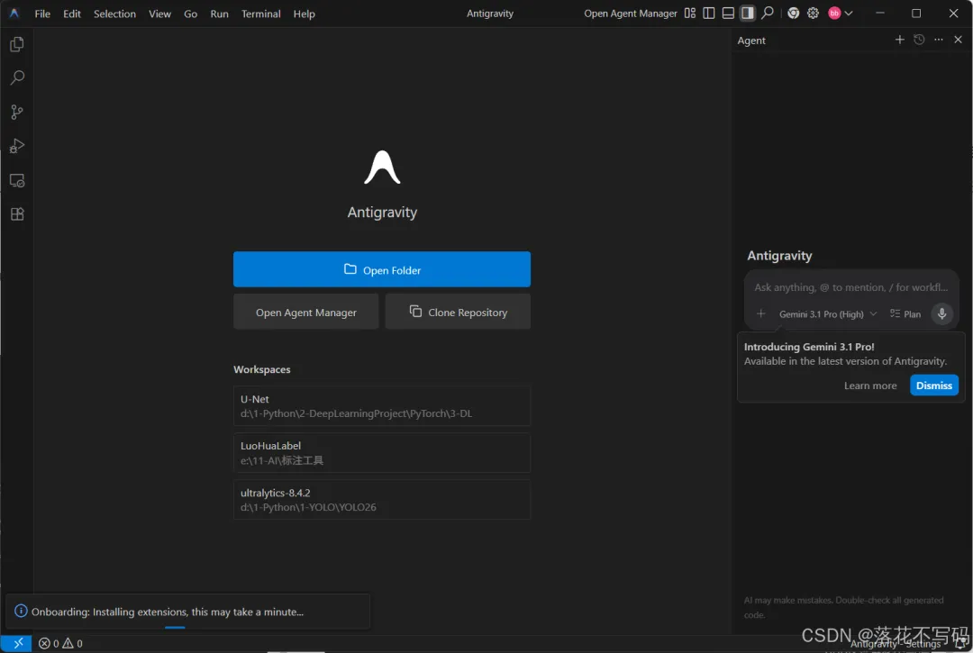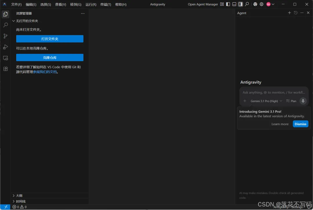 Antigravity 是一款将顶配大模型深度嵌入底层的全栈开发神器。它的外壳和操作习惯完全复用了你最熟悉的 VS Code,但内核已经被彻底 AI 化了。当你开发前后端分离的架构时,不管是在写 Vue3 的前端交互控件,还是用 Django 处理后端复杂的业务逻辑,它能通读你整个项目,直接帮你写出完美对接的跨文件代码。下面记录 Antigravity 安装和使用过程遇到各种 bug,以及解决方法。