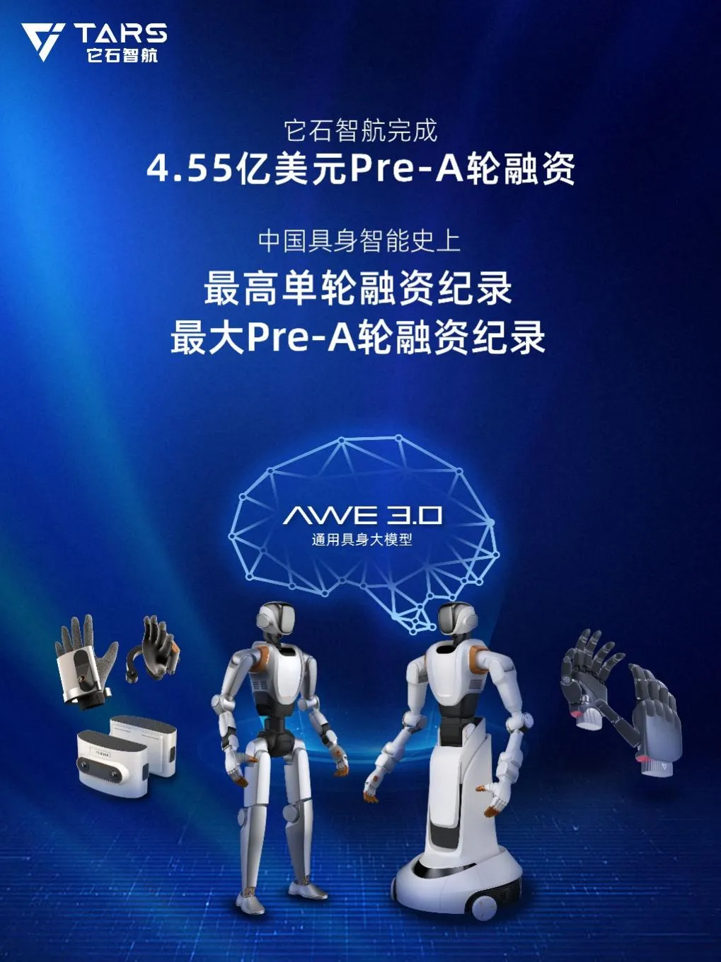 中国具身智能融资新纪录诞生!它石智航Pre-A轮融资4.55亿美金