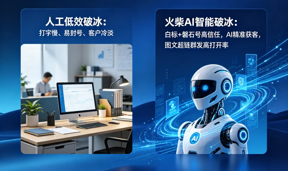 ✅ 图文超链群发,破冰消息打开率5倍纯文字破冰,客户可能看都不看。图文超链(产品图+一句话+链接)让客户0.5秒知道你在卖什么,点击率25%-35%。火柴AI支持自动群发,智能节奏控制,不封号。
