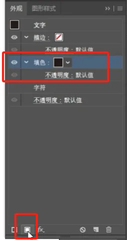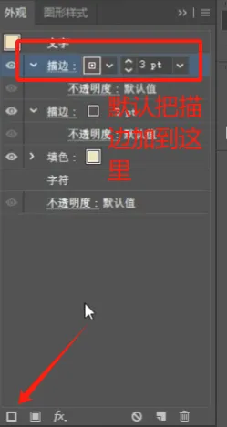 把画面中的文字再次填充一个颜色,把厚度做出来:点【描边】,默认会把描边加到最上面,选中,下拉,改变新添加描边的位置;所有操作都在下方进行。