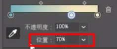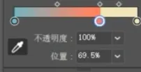 如何让两个颜色之间变成一条直线:把两个滑块的位置尽量保持在同一跟线上,“红色”【位置】69.5%,