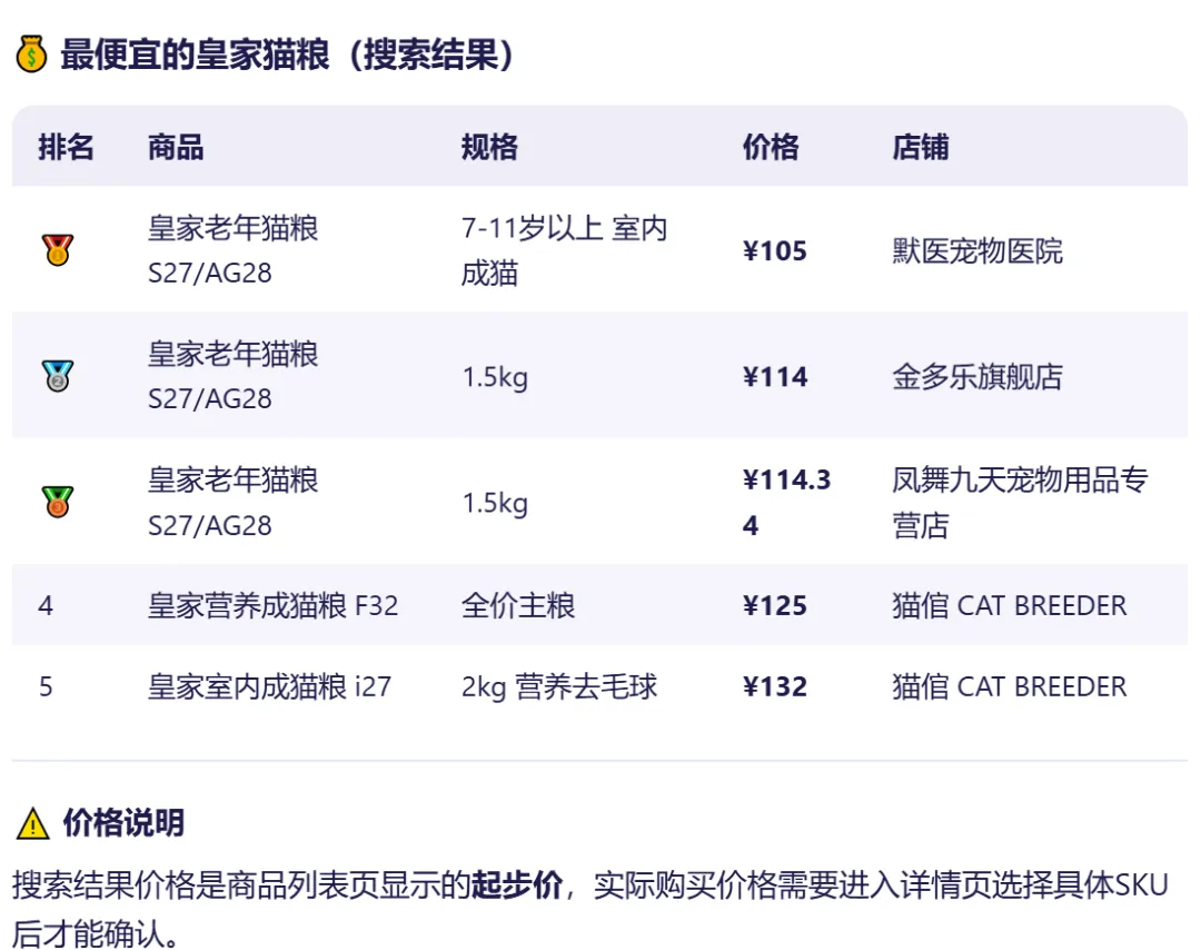 第一步:搜索最便宜皇家猫粮