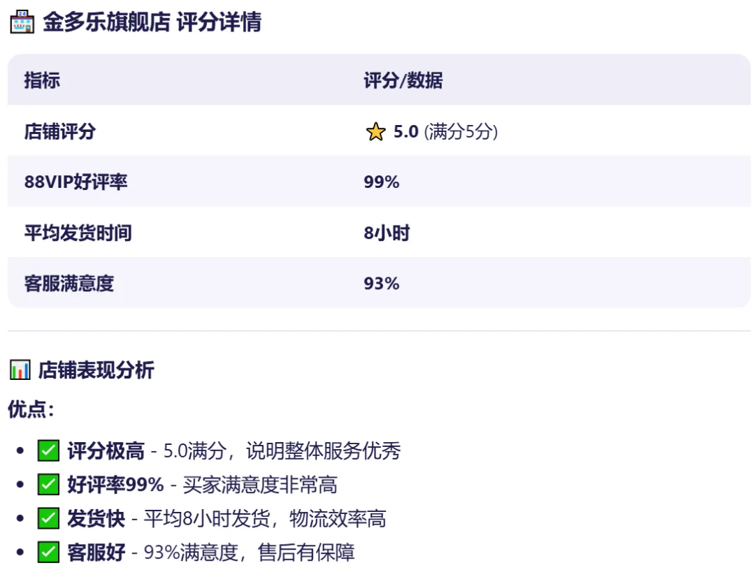 接着我用taobao-shopping查了金多乐旗舰店的评分: