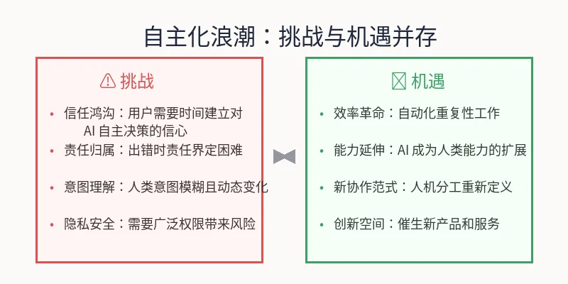 然而,AI Agent 的自主化浪潮并非没有隐忧。当 AI 开始"替你做决定",一系列新的问题也随之浮现。