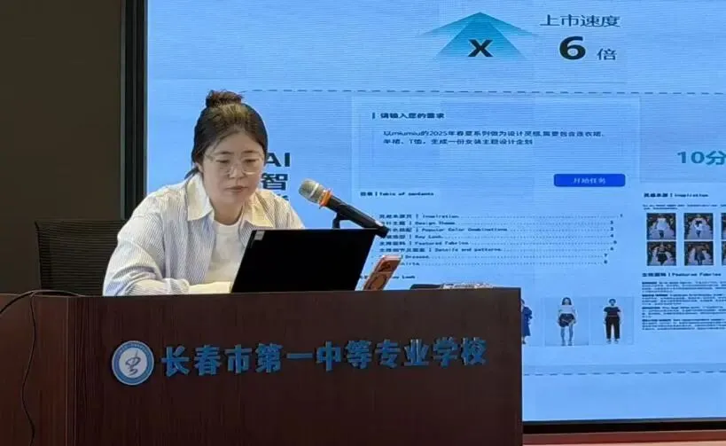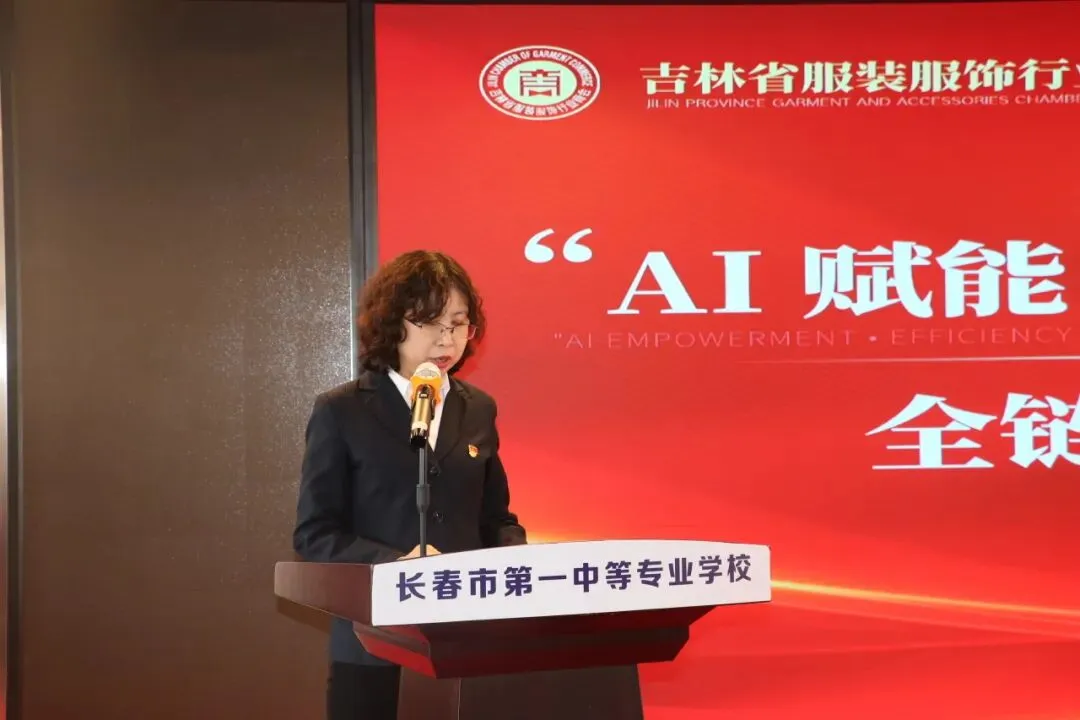 长春市第一中等专业学校校长皮艳秋致辞,她对商会与行业专家表示欢迎与感谢!她表示,本次AI培训紧扣产业需求,对深化产教融合、培育复合型技能人才意义重大,更是赋能区域产业发展的务实举措,学校将持续与行业携手共育人才,助力服装产业高质量发展。