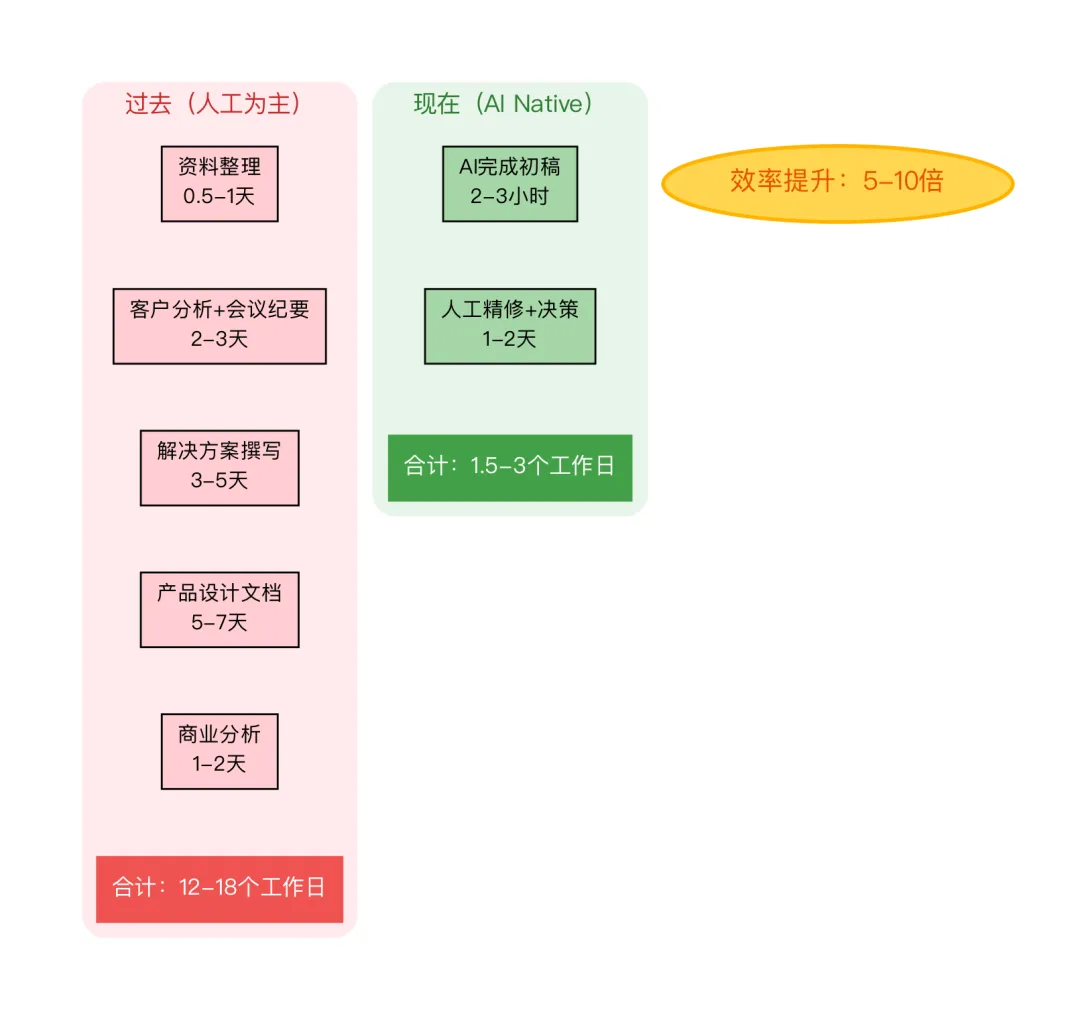 客户分析 + 会议纪要 | 2-3 天 | 10 分钟 |