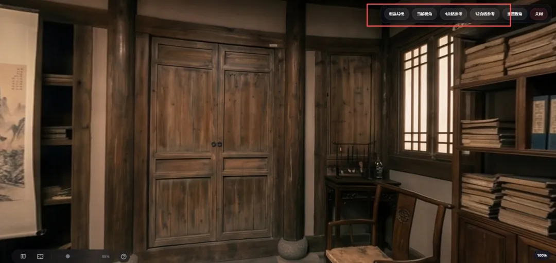 接下来我利用这张书房的VR 360°全景图导出的4宫格参考图来验证下场景一致性的效果。