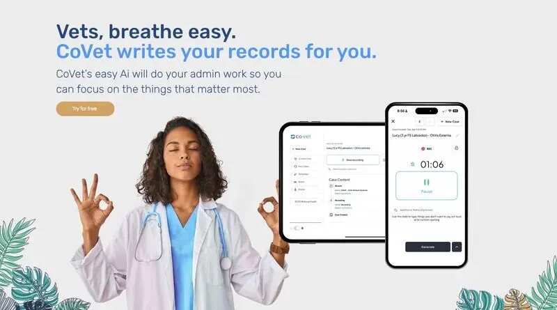 CoVet 的产品定位是面向兽医团队的人工智能临床副驾工具,用来自动生成病历、转写问诊内容、整理客户沟通,尽量减少临床之外的重复劳动。