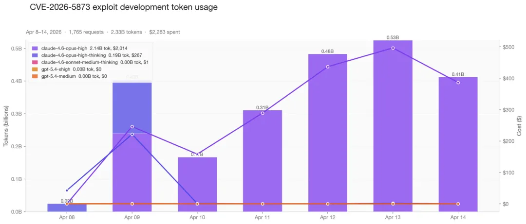 实验历时一周,累计消耗约23亿tokens(1765次请求),成本约2283美元,并需要20小时的人工指导。据Hacktron AI报道,研究人员必须持续向模型反馈调试器(LLDB)信息,以保持其正确方向。