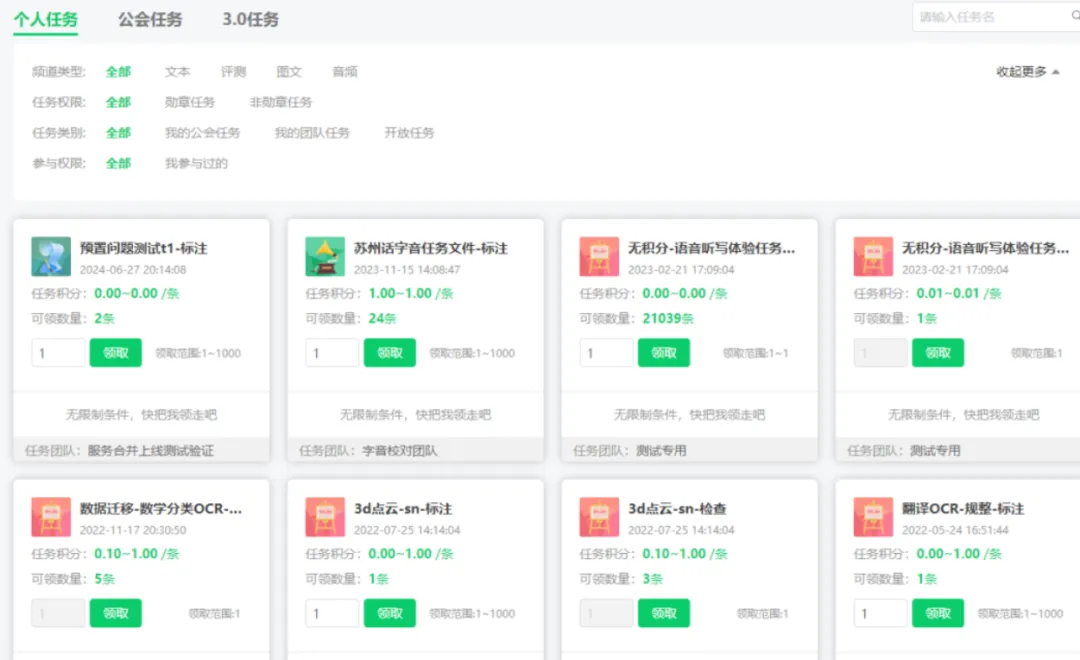这个平台和上面的 YLZB 互补,视频和图片类任务比较多,界面操作也简单,就算是电脑小白,摸索一会儿也能学会,特别适合刚开始接触标注的人。