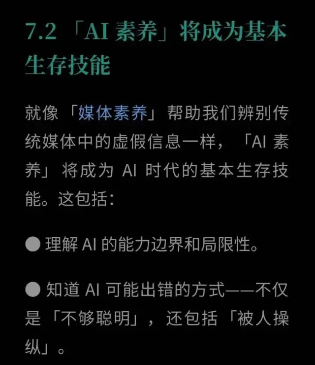 真正的AI素养,不是会用AI,而是会用、会辨、会思考、会创造。是知道AI能做什么,更知道AI不能做什么;是既享受技术带来的便利,又保持对技术的清醒认知。