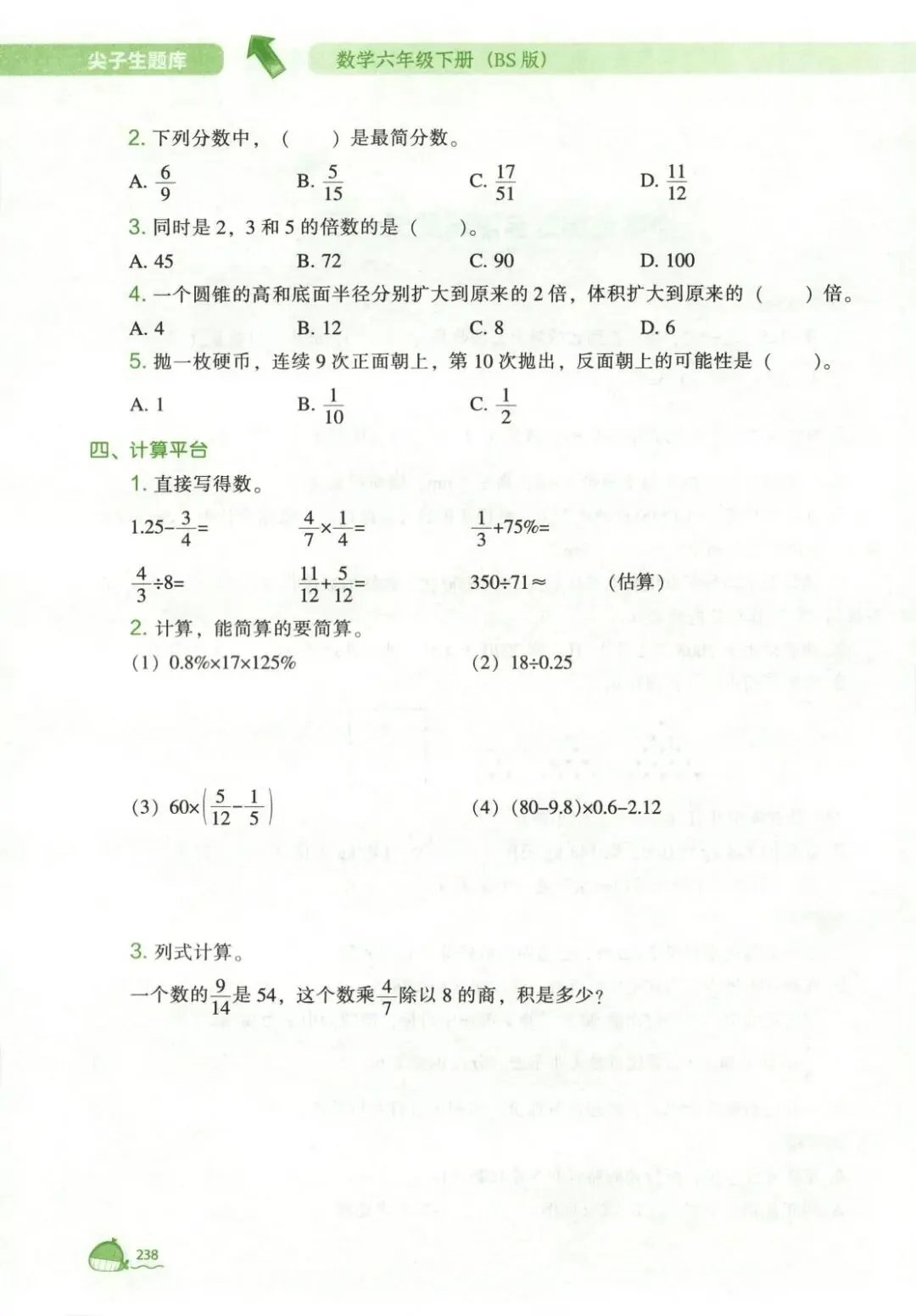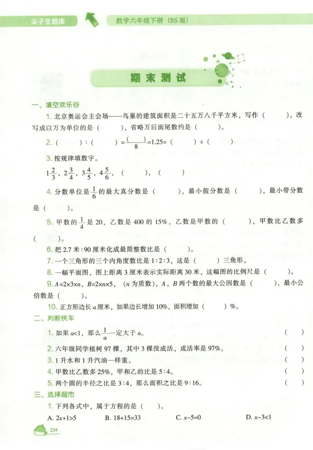 《尖子生题库》北师大数学2-6年级下册丨pdf电子版,可下载打印,链接:https://pan.quark.cn/s/f73746a04d22