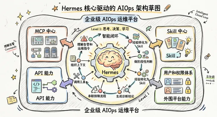 而咱们运维领域不就需要这种“自我进化”的超级Agent吗?所以,这两天我就在琢磨能不能把Hermes深度用于AIOps体系里。于是,今天这篇文章就产生了。