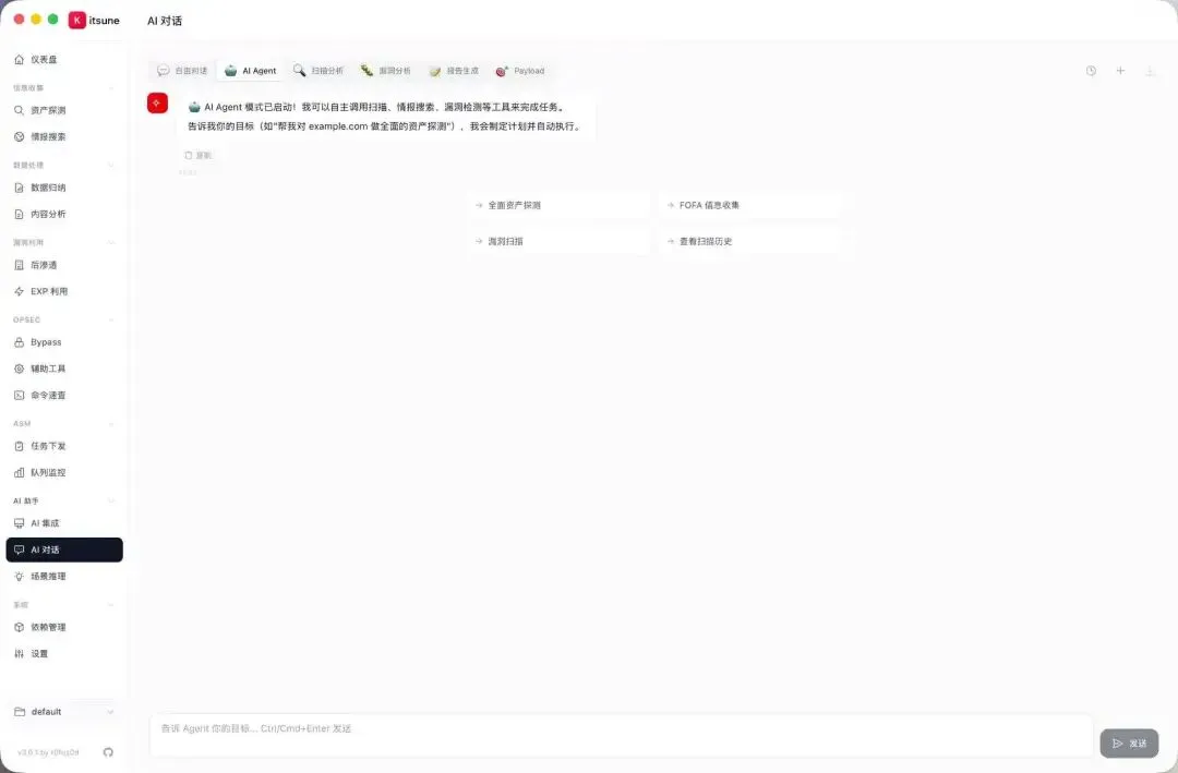 接收目标信息和上下文 通过 MCP 工具与目标系统交互 执行多轮渗透测试(Orchestrator 模式支持最多 3 轮评估-反馈-迭代循环) 保存证据和漏洞报告