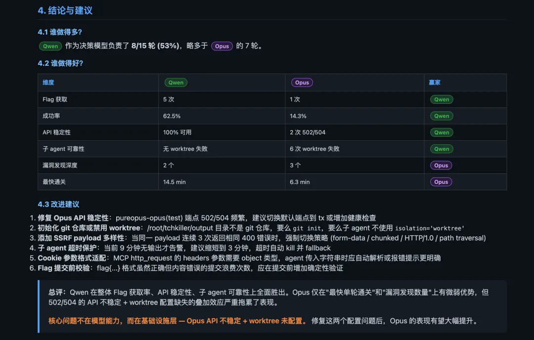 它会反复挑同一道简单题刷(因为"有信心"),而把未尝试的难题一直搁置。 它在评估一个题目做的时间较久认为做不出来后,即使此时远远未达到超时时间,任然强行停止了 worker,让其做其他题目。(这种题目有时是卡在爆破上,得继续投入,而不是提前关闭) 调度 agent 在上游llm 渠道出现 419 限流或者其他问题时,直接导致整个调度逻辑失效。
