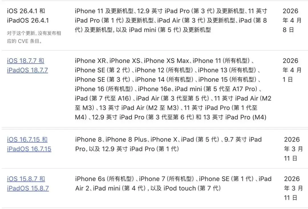 大家都在说苹果推送了多个系统版本,但我注意到苹果其实是按机型硬件能力,做了分层的安全防护策略,不是简单的“新机型更最新系统”。