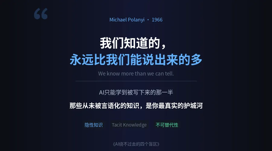 这就是隐性知识(Tacit Knowledge)。而AI,只能学到被写下来的那一半。