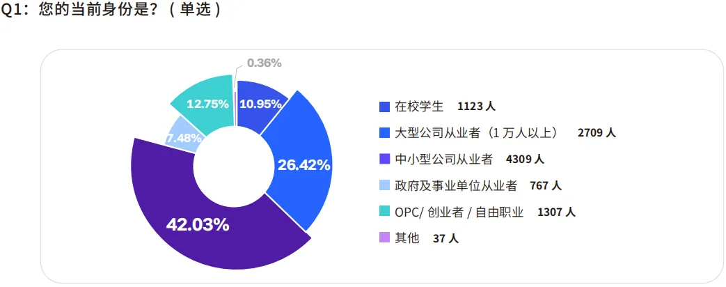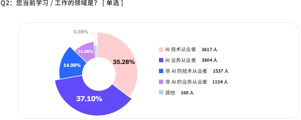 AI 开源早已不是极客的专属游戏。报告显示,AI 业务从业者占比达 37.10%,历史性反超传统 AI 技术从业者的 35.28%,跨界群体更是占据 27.62% 的庞大比例。近七成用户奋战在企业一线业务场景,30% 为学生、创业者和自由职业者。