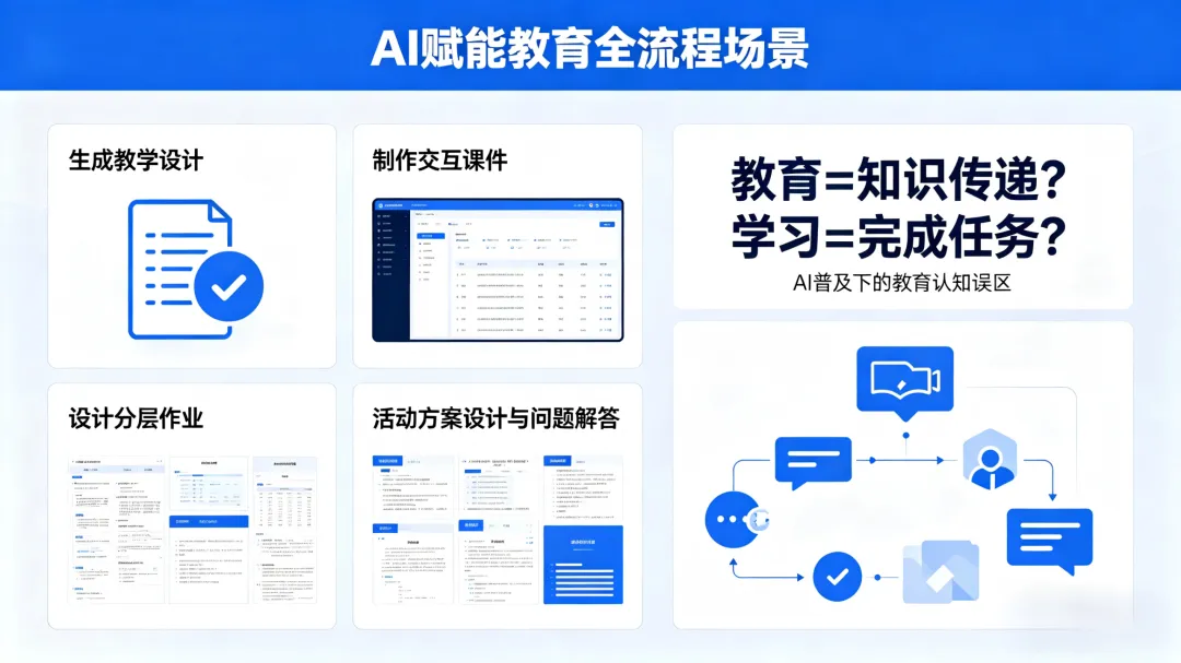 当AI深入教育各种场景应用,从生成教学设计、制作交互课件、设计分层作业,到各类活动方案设计、问题解答全流程都能被AI赋能时,很多人把教育等同于“知识传递”,把学习等同于“完成任务”。