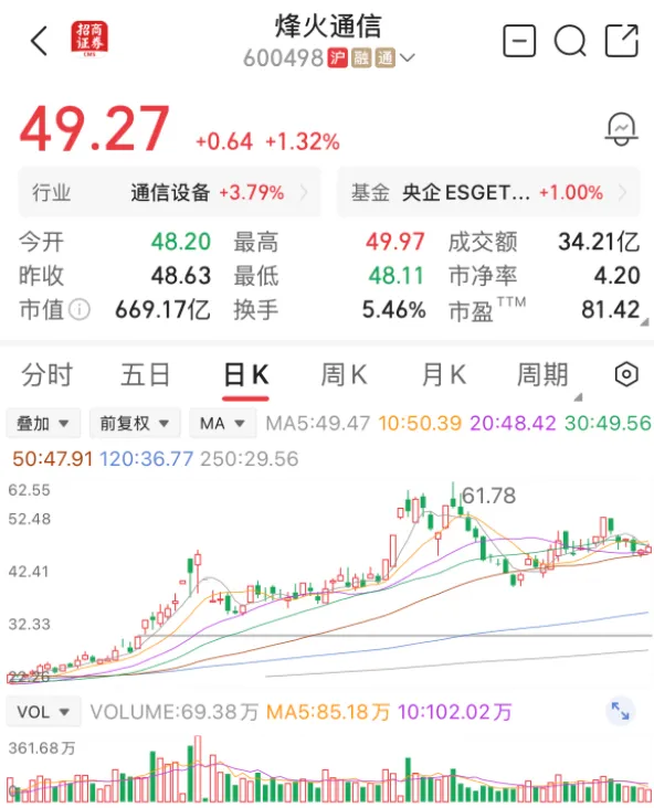 - 业绩与估值:2025年光纤板块受益于集采落地与空芯光纤中标,带动整体净利润稳健增长。当前股价49.27元,总市值669亿元,PE(TTM)81.4,2026年预期PE为25-30。