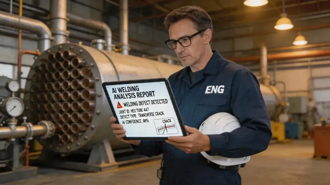 拍了一张泄漏点的照片 上传给 AI,角色设定为"10 年换热器行业精益生产导师" AI 3 分钟给出分析:焊缝表面气孔、焊接结构应力、工艺一致性、保护气问题 继续追问,AI 给出完整的整改方案,分 3 个阶段落地