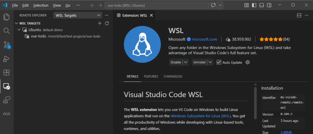 如果你是 Windows 用户,需要通过 WSL VS Code extension 来连接 WSL 中的 Hermes Agent: