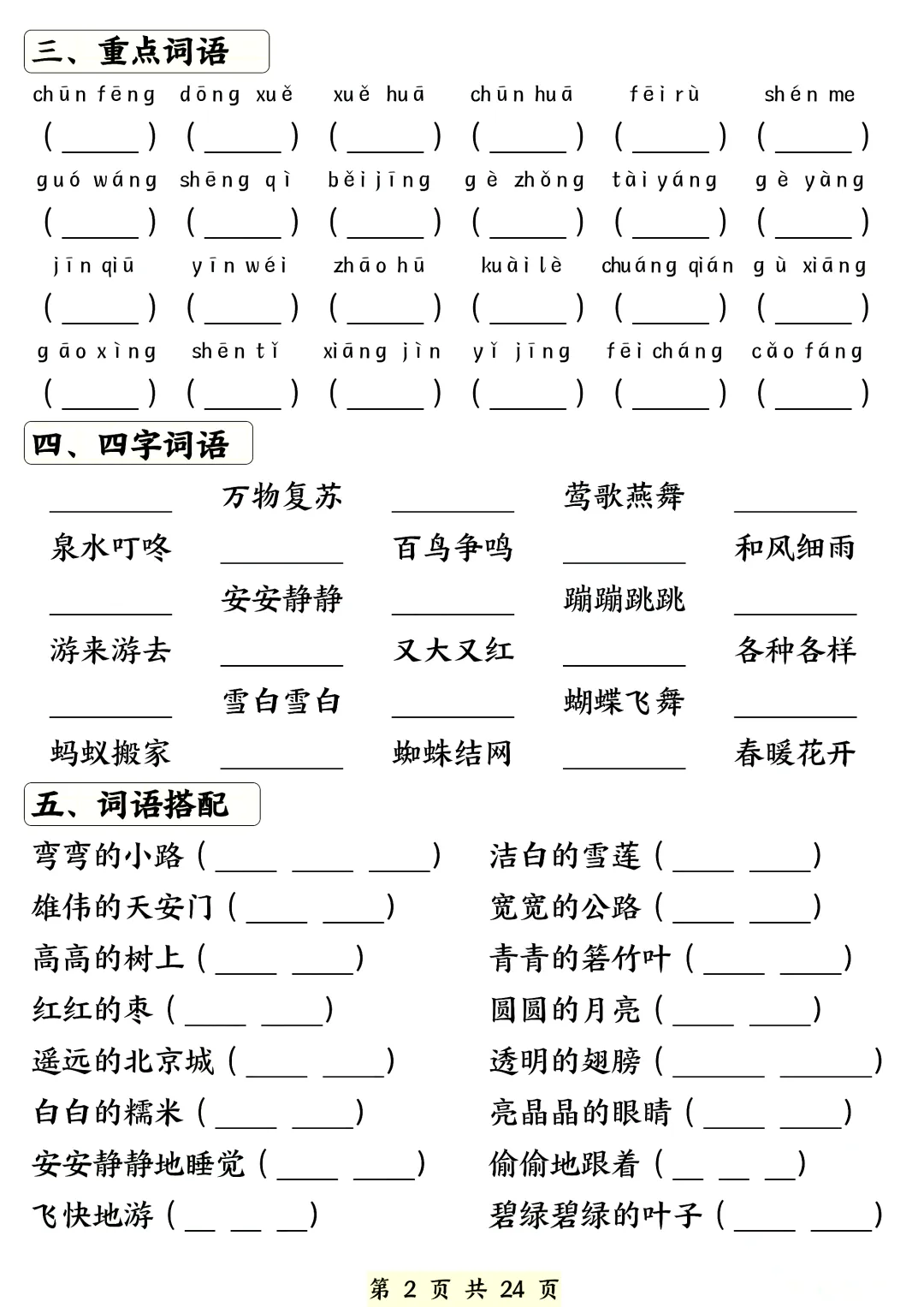 一年级下册语文期中知识点汇总练习