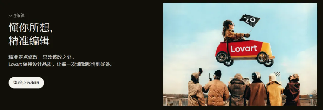 真正的精准编辑:Lovart的ChatCanvas功能让你可以直接在画布上选中要修改的元素(比如Logo太小了、想把杯子上的图案换个颜色),然后用自然语言告诉它,AI只会修改你选中的部分,其他保持不变。