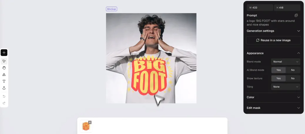 强大的编辑工具箱:除了生成,Recraft 还内置了一系列专业编辑工具,包括一键移除背景、AI 橡皮擦(擦除不需要的元素)、图像高清放大(至 4K)、样机生成器(将设计一键贴到T恤、手机壳等产品上)等等。
