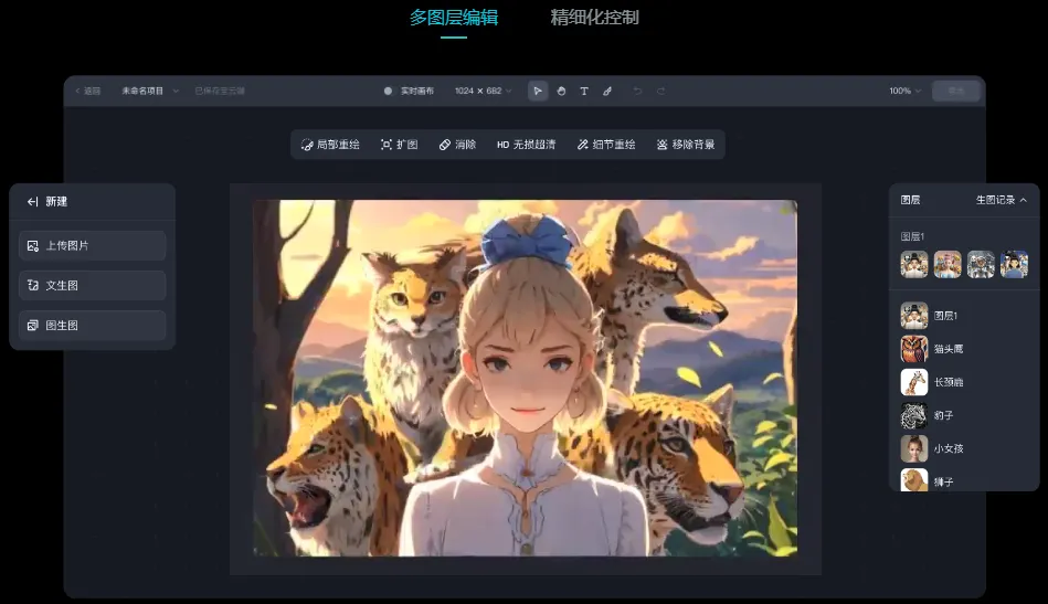 图像与视频编辑:智能扩图、智能消除、智能画布等,提升作品质量。