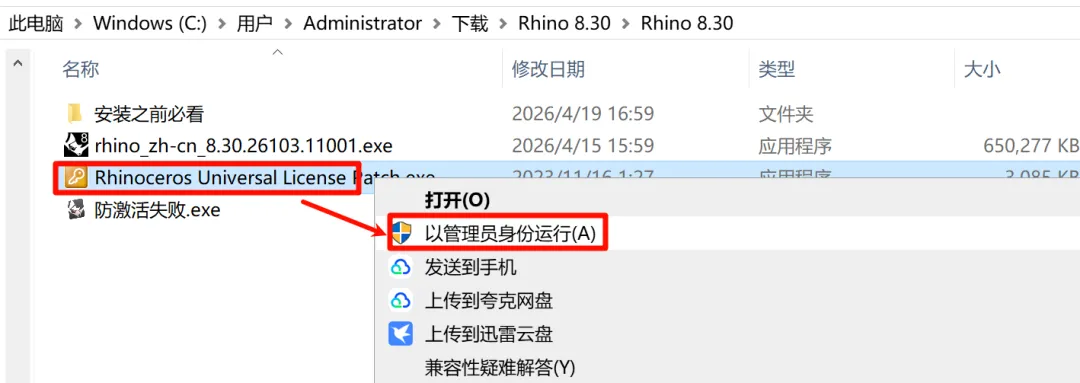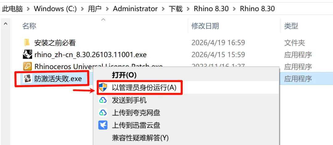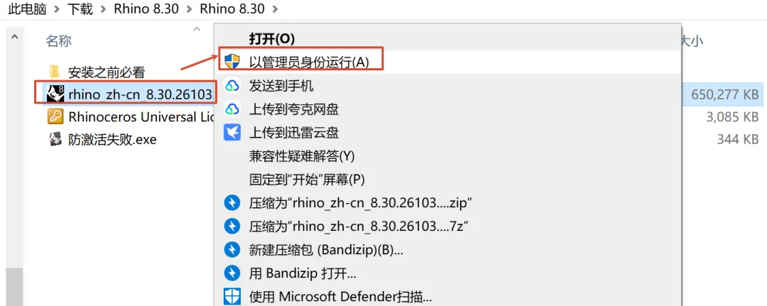 2.选中“rhino_zh-cn_8.30.26103.11001”右键以管理员身份运行