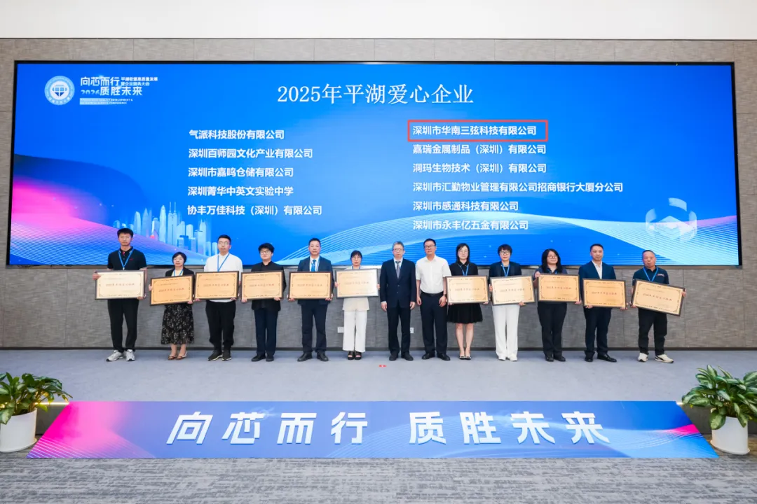 在表彰环节,华南三弦在公益事业和社会责任方面的突出贡献,被授予“2025年平湖爱心企业”荣誉称号,这是对华南三弦积极参与社区建设、践行企业担当的认可。