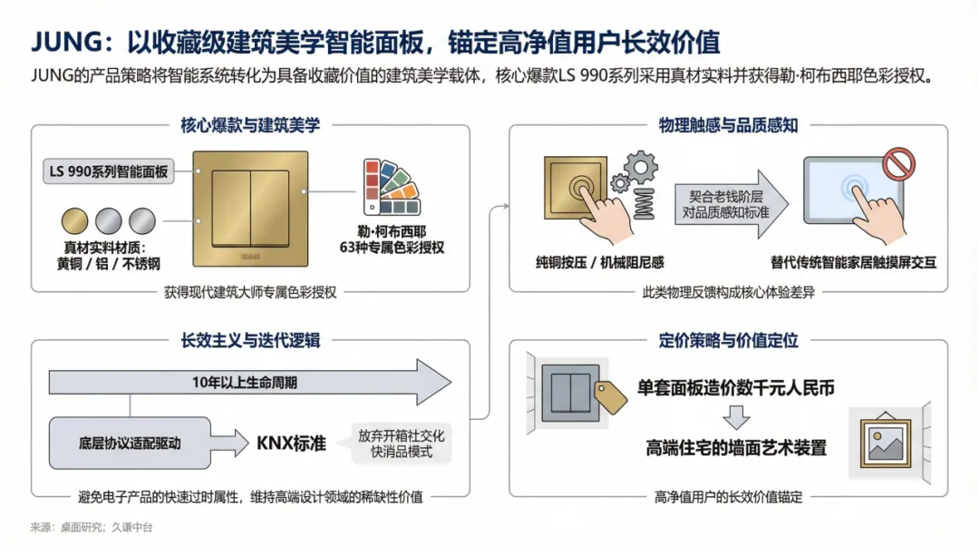 永诺的核心策略,是将智能开关这类科技产品,当作建筑美学的一部分来设计和销售。其最著名的LS 990系列产品,并非使用常见的塑料或玻璃,而是采用整块黄铜、铝或不锈钢切割而成。这种对真实材料的坚持,让其单套面板的成本高达数千元,使其脱离了电子消费品的范畴,成为一种嵌入墙体的艺术装置。