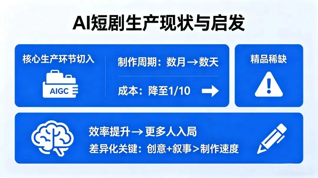启发:效率提升让更多人能入局,但差异化竞争的关键转向“创意+叙事”而非“制作速度”。