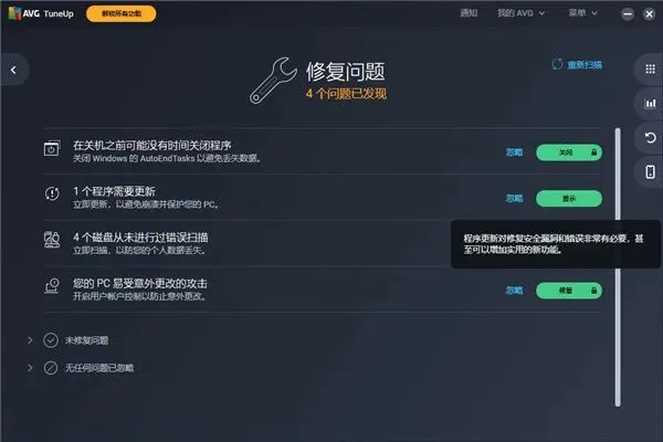AVG TuneUp是一款专业靠谱的系统优化工具,能有效提升系统运行流畅度,支持系统分析优化、磁盘清理、注册表清理编辑、内存优化、软件卸载、文件还原等多项实用功能。