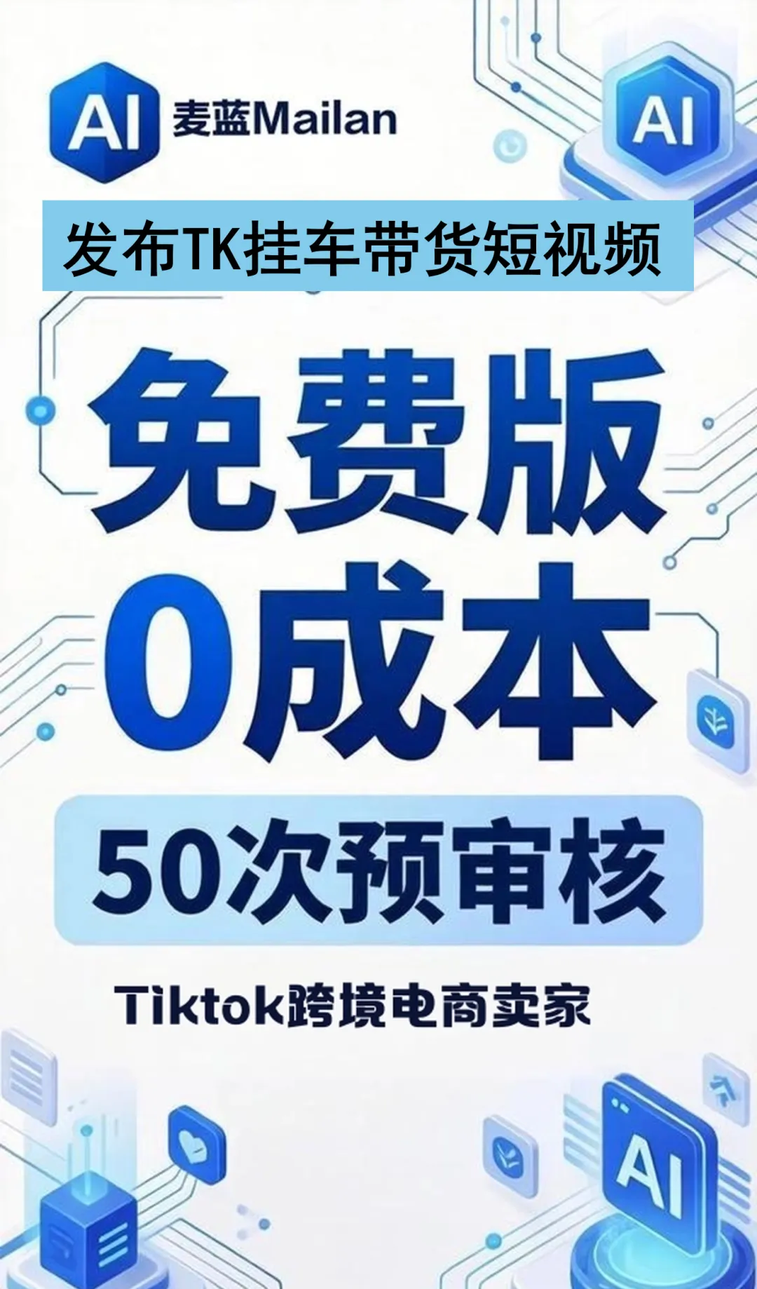麦蓝AI正式推出免费版,商家可0成本使用TikTok官方接口发布挂车带货短视频。