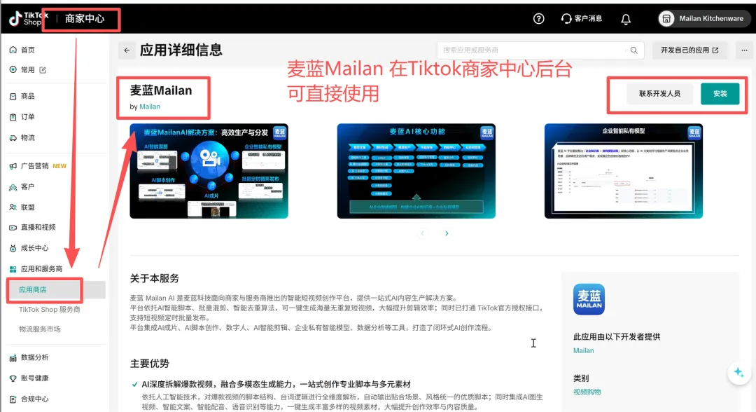 麦蓝AI 5.0已获得TikTok Shop官方授权,入驻TikTok商家后台。