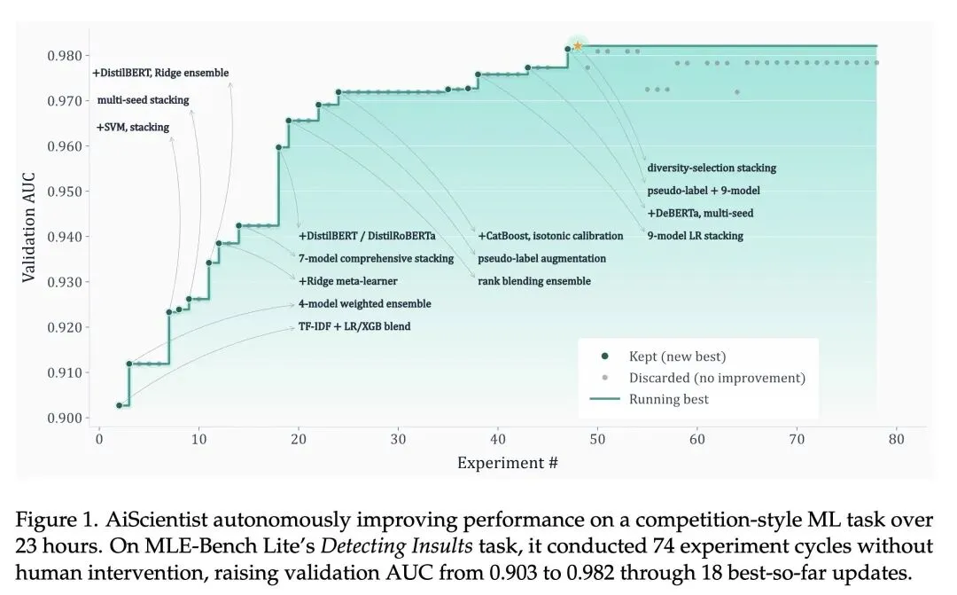 构建了首个专注于长周期ML研究工程的端到端自主AI系统AiScientist。 从经验上证明了长周期AI任务的瓶颈不在于模型的局部推理能力,而在于系统级的“持久状态连续性(Durable State Continuity)”。 在极其困难的PaperBench(从零复现顶会论文)和MLE-Bench Lite(Kaggle式竞赛打榜)基准测试上刷新了SOTA,大幅缩小了AI智能体与人类ML博士之间的差距,同时显著降低了推理成本。