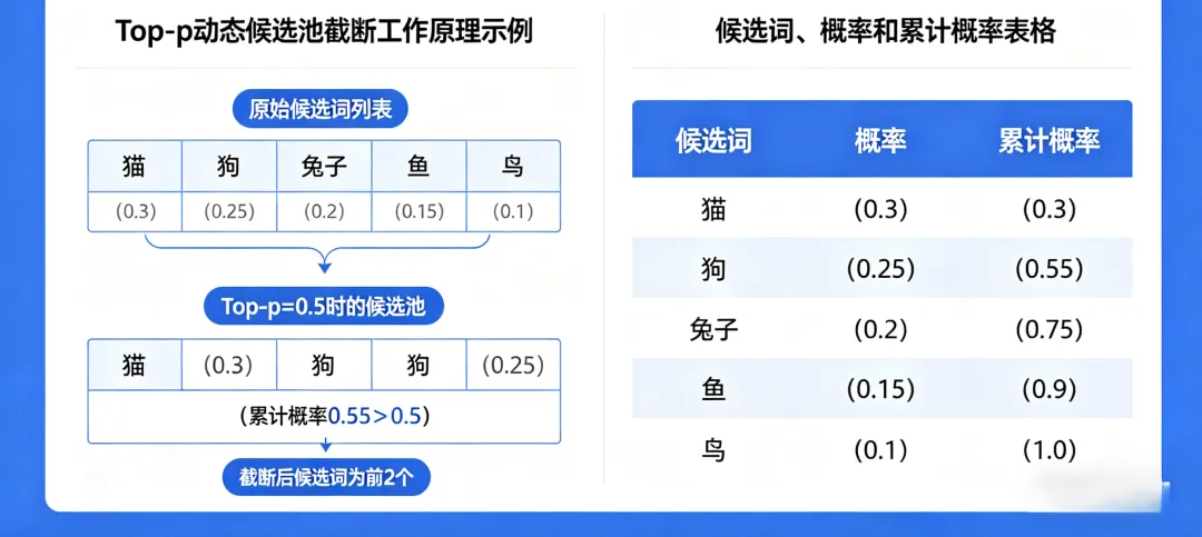 三、Top-p:动态候选池截断