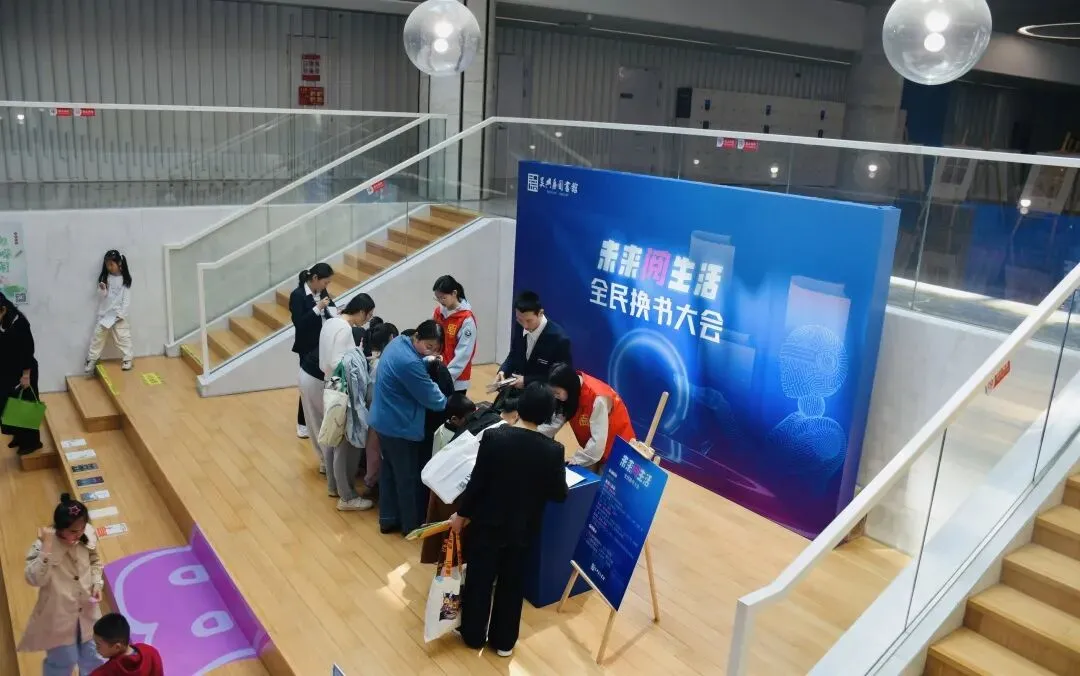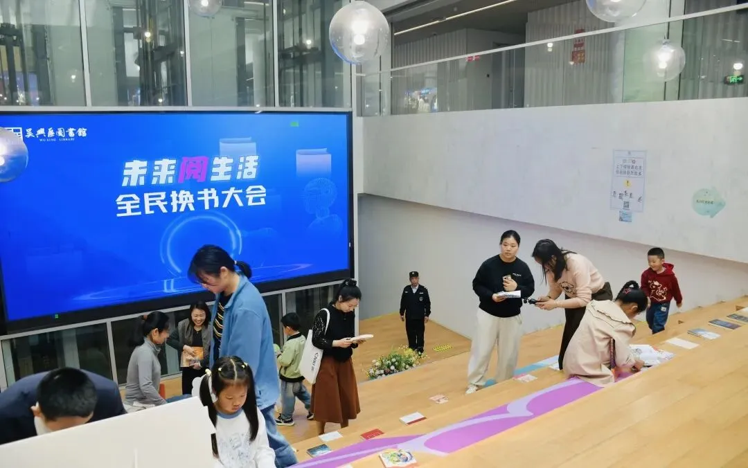 同时,吴兴区图书馆一楼中庭设立“未来阅生活”数字阅读市集,汇聚新语听书、万方数据等优质数字资源,让读者亲身体验电子图书、有声读物等前沿阅读形式。“科技+人文”主题书展与智能荐书设备相结合,精准匹配读者需求。全民换书大会让闲置好书重新流通起来。最受欢迎的当属“你选书,我买单”服务——读者在联动新华书店的选书区挑选心仪图书,按规则办理借阅即可免费带回家,读完归还后纳入馆藏。