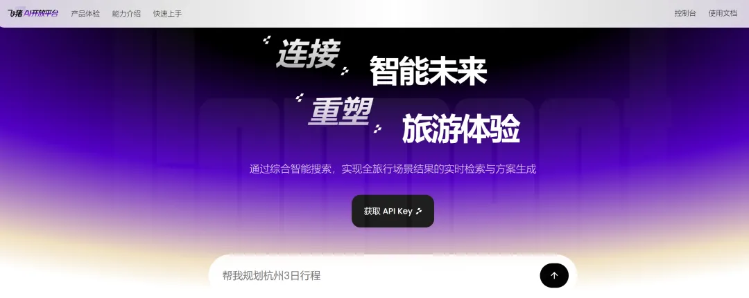 飞猪AI开放平台于近日上线,国内版官网已开放注册和申领API Key。据官网消息,飞猪AI开放平台为每位登录用户限时派发5000次调用包,使用有效期不限。