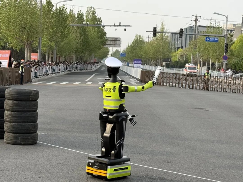 4月19日7:30,北京亦庄半程马拉松比赛鸣枪开跑,在距离出发点不远的第二个转弯处,一台涂装着交警荧光绿式样的机器人站在圈定的区域内,不断用左转手势指挥参赛选手左转,并进行语音提示,如“请左转,注意安全”等,确保赛道秩序井然。机器人动作流畅精准,其内置传感器能实时感知选手流动,自动调整指挥频率,展现出高度的智能化水平。