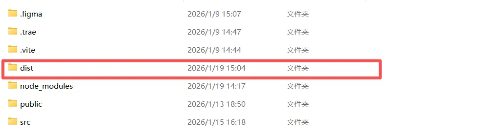 打包代码也只需要跟AI说明“你要用OSS部署”即可,AI 运行结束后,会多出来一个叫做 dist 的文件夹,这就是我们待会部署需要的全部代码资源。