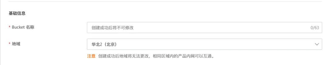名称就是 Bucket 你自己用来分辨的名称,按照你的喜好取名即可。地域是指这个 bucket 创建在哪里,严格来说其实是无所谓,只要区分国内外即可,如果你在这里选择了国外的,其实域名是不需要备案的,只需要购买即可直接用,但是这样国内就无法直接访问了。