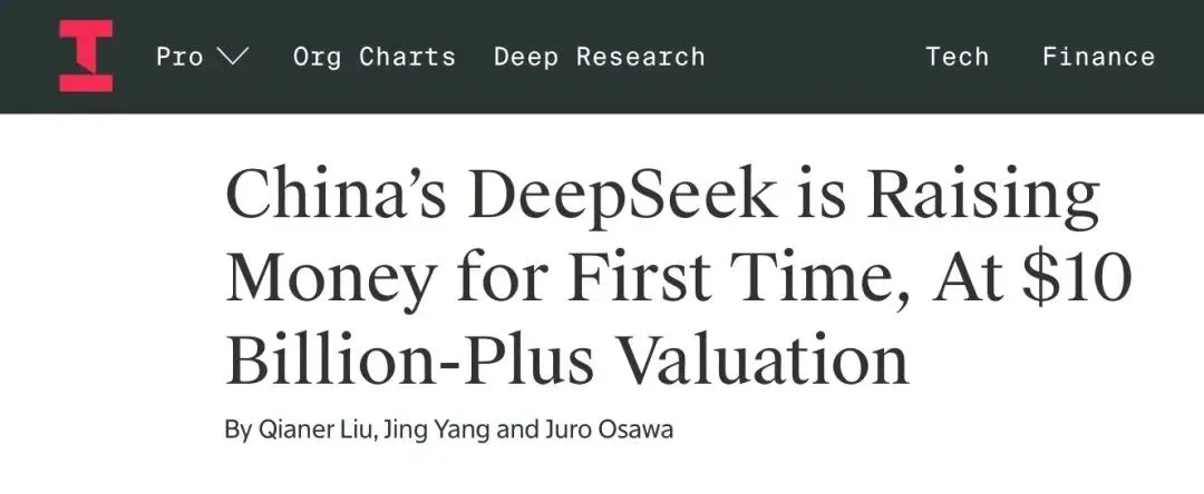 国外媒体The Information也报道称,DeepSeek计划以不低于100亿美元的估值,筹集至少3亿美元资金。这是DeepSeek成立以来的首次外部融资。目前DeepSeek正在与投资者接触。