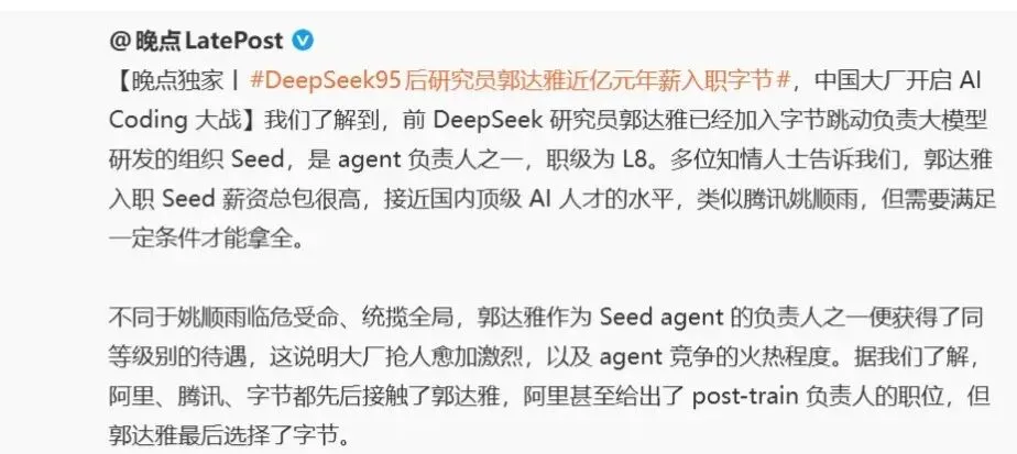 此外,核心人才流失的挑战也不容忽视,近期该公司遭遇人才动荡,V2模型重要贡献者罗福莉已加入小米负责AI业务,核心研究员郭达雅则跳槽至字节跳动,引入外部资金后,可通过更具竞争力的薪酬体系稳定核心团队。