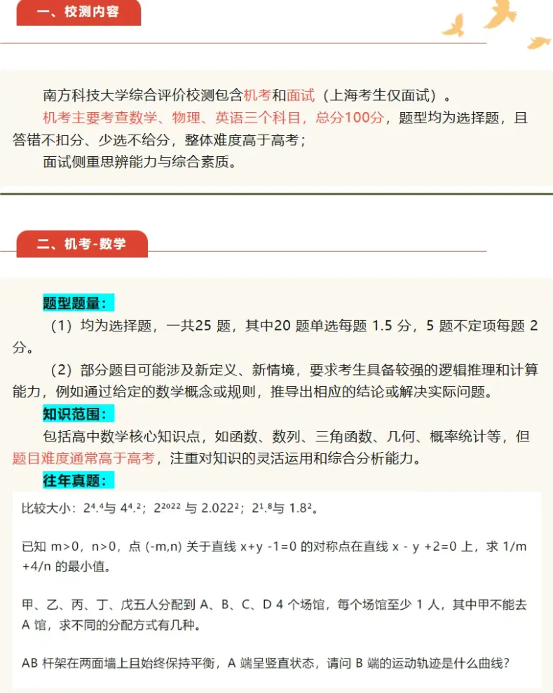 三、南科大机测范围、题量及真题
