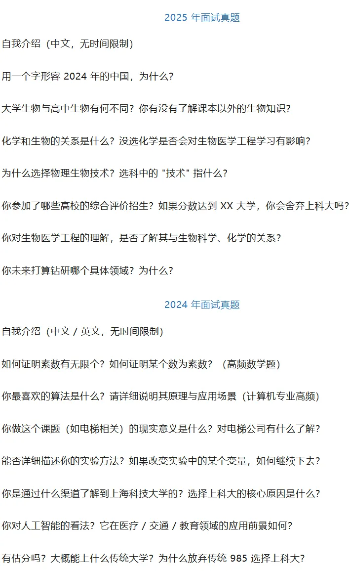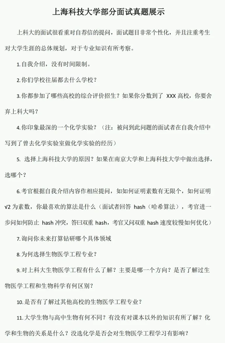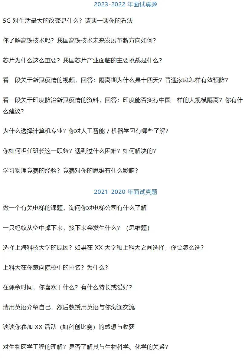 四、上科大部分面试真题