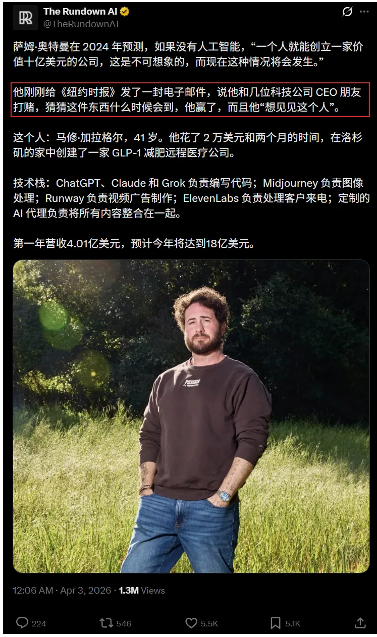 Medvi的案例出来之后,Altman说他赢得了赌局。