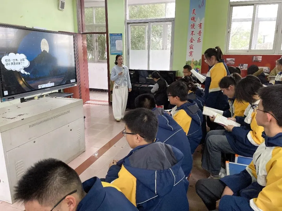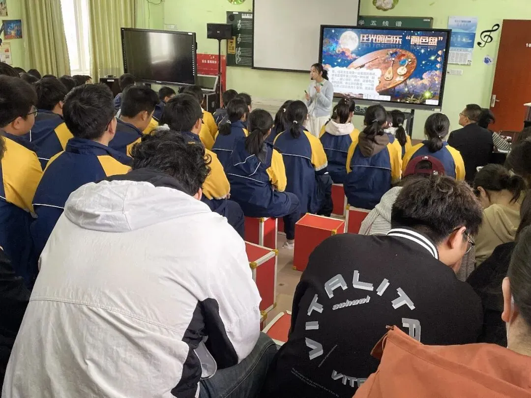 课堂以夏夜追月画面设问开篇,播放民族管弦乐版《彩云追月》,引导学生静心聆听,感知乐曲宁静、灵动的情绪,结合曲目百年演变背景,开启民乐学习。